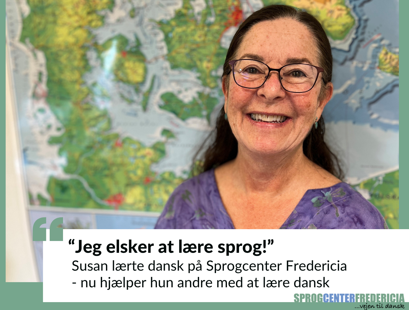 Da Susan blev færdig med sin danskuddannelse på Sprogcenter Fredericia, blev hun frivillig hos os. Nu hjælper hun andre med at lære dansk.