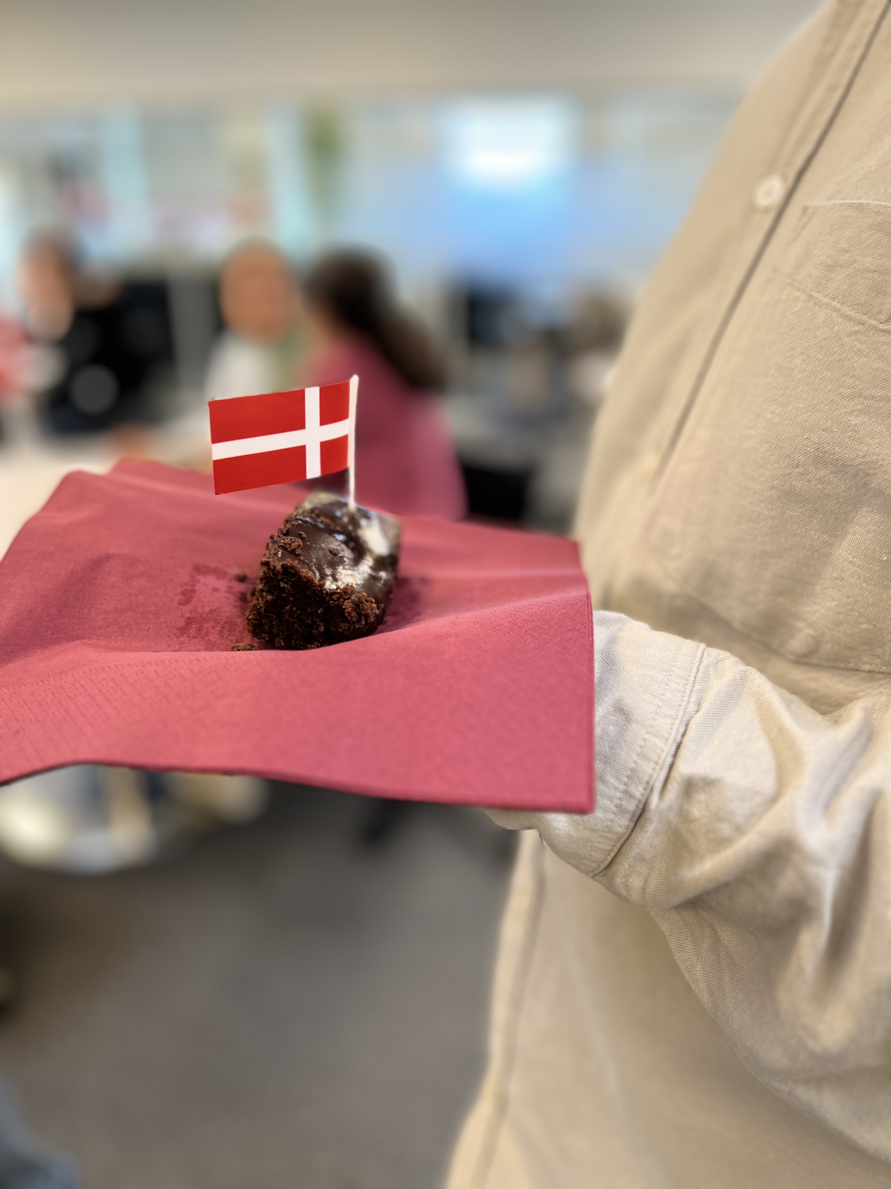 Anatolii blev fejret med taler, gaver, fødselsdagssang og kage - og med en musikalsk overraskelse. En af vores undervisere, Svend, spillede på et tro kopi af en lut fra bronzealderen.