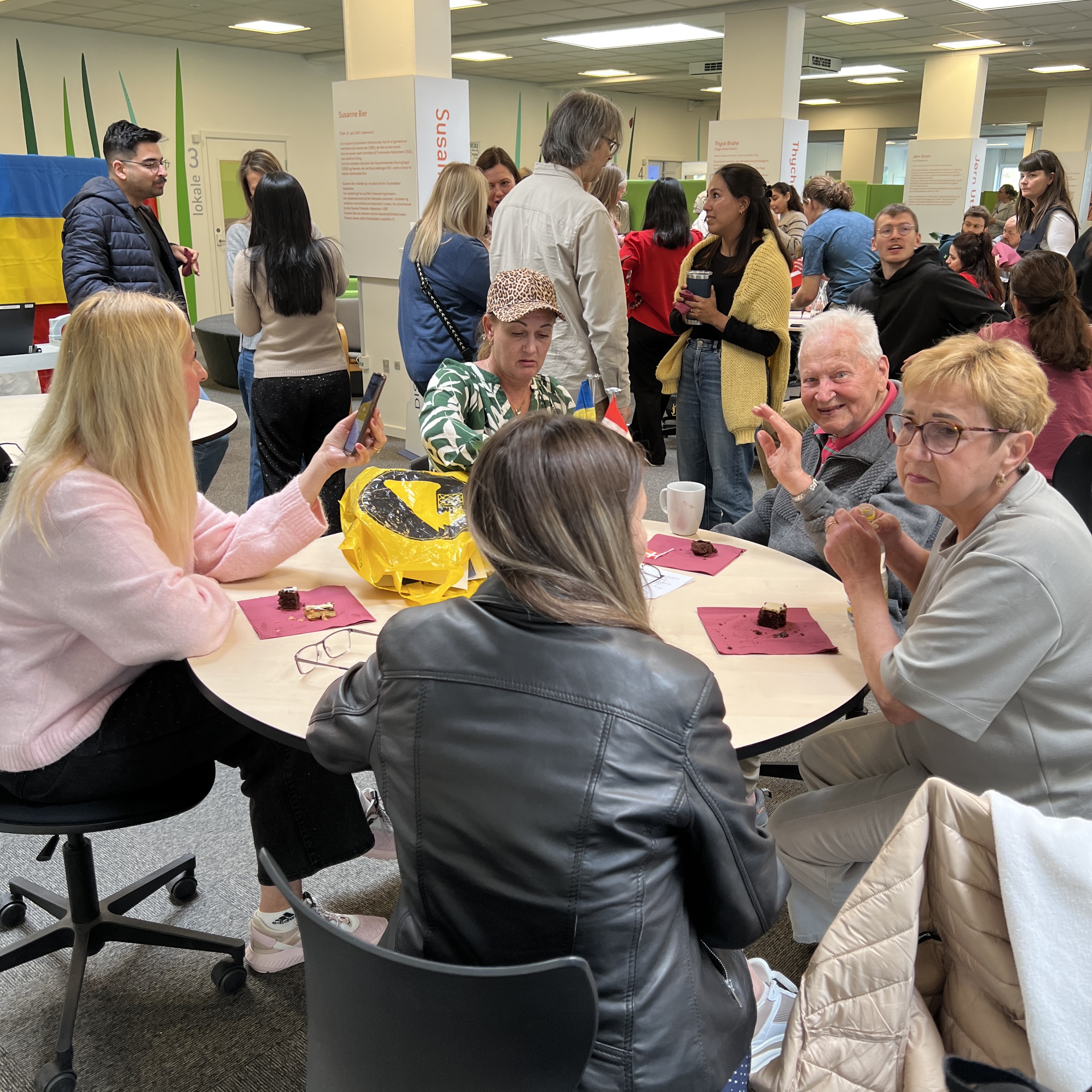 Hele skolen mødtes i fællesrummet og fejrede Anatolii, som i denne uge er fyldt 90 år.