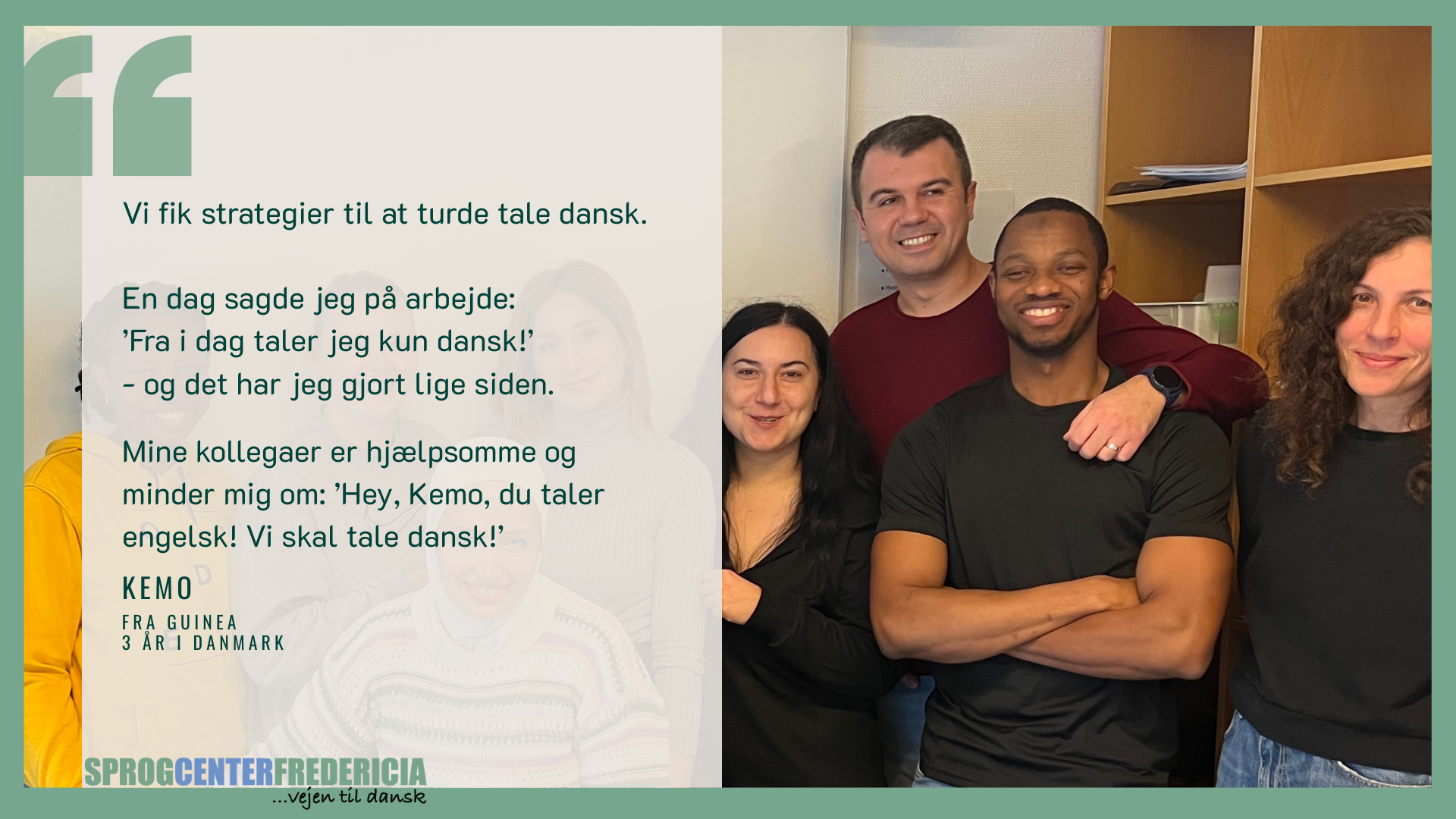 ”Mange danskere slår velmenende over i engelsk, men det er egentlig et misforstået hensyn. Når kursisterne sætter ord på, at ’jeg er i gang med at lære dansk, vil du hjælpe mig?’ så vil de fleste rigtig gerne. Så sætter man tempoet ned og bliver i dansk.”