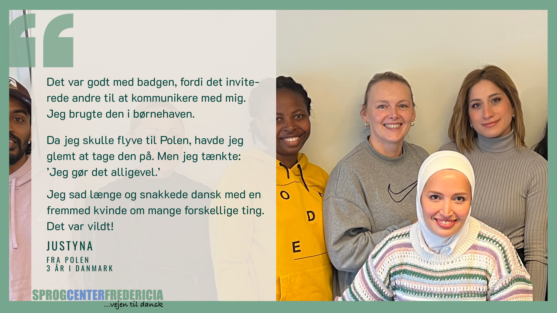 Ét af de greb, Marianne introducerede, var en lille, gul badge med teksten: Vil du snakke dansk med mig? Et lille tiltag – men med stor effekt.