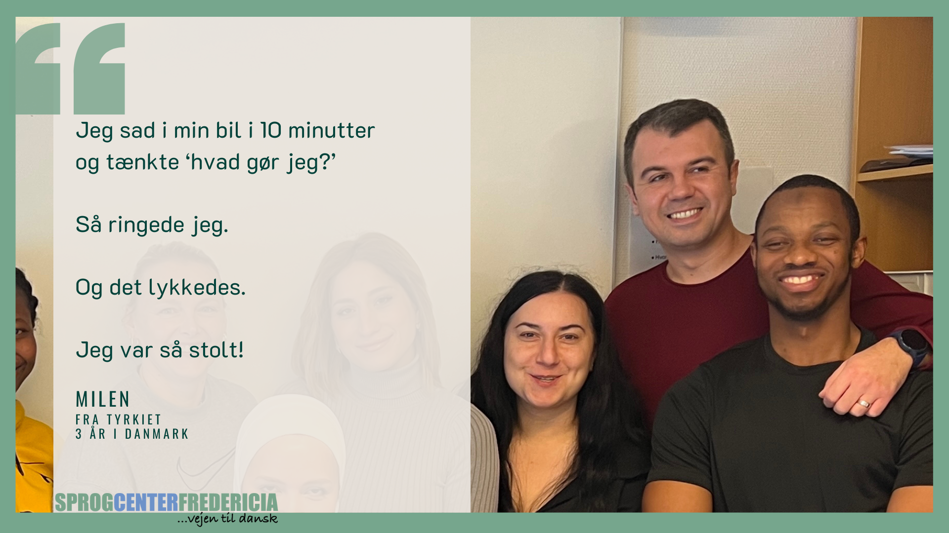 I undervisningen havde Milen hørt sine klassekammerater fortælle om at lykkes med at tale dansk i hverdagen. Og det gav ham mod til selv at gøre det – at ringe op og tale dansk til en vidt fremmed.