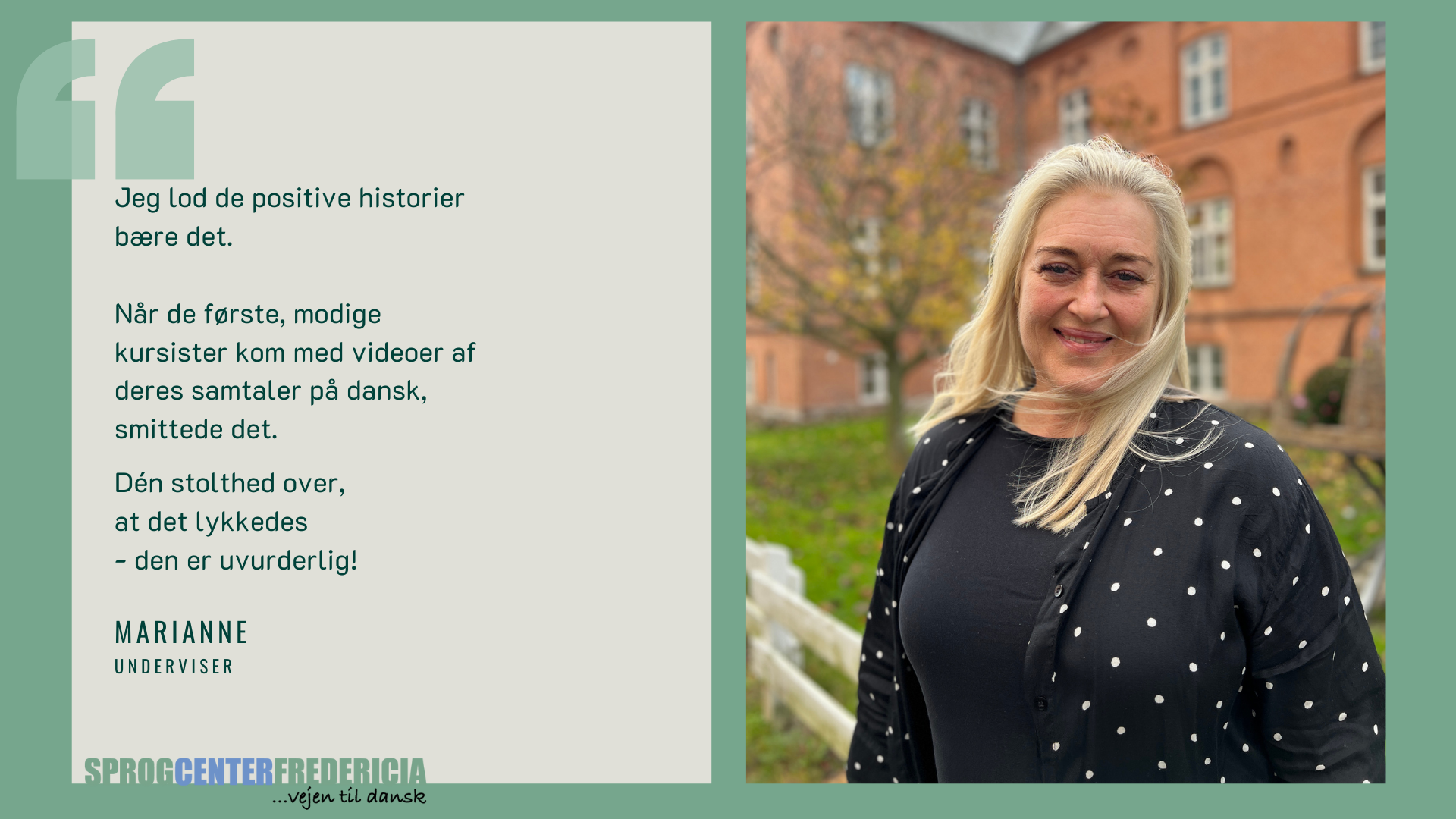 ”De VED at de har brug for dansk, og at de skal bruge det på et tidspunkt. Så det var mere sådan en: ’åh, er det nu?’” fortæller Marianne.